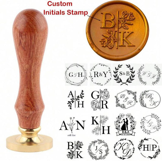 ختم شمع مخصص بالأحرف – مقبض خشبي أنيق | Wax Seal Stamp بحجم 2.5 سم