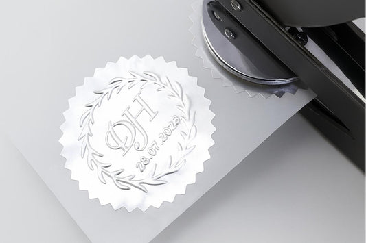 Use the metal embosser to apply golden stickers on envelopes, files, or packaging. Premium details start here.