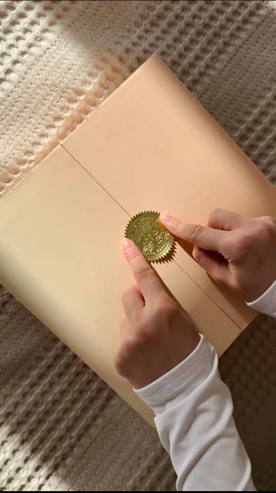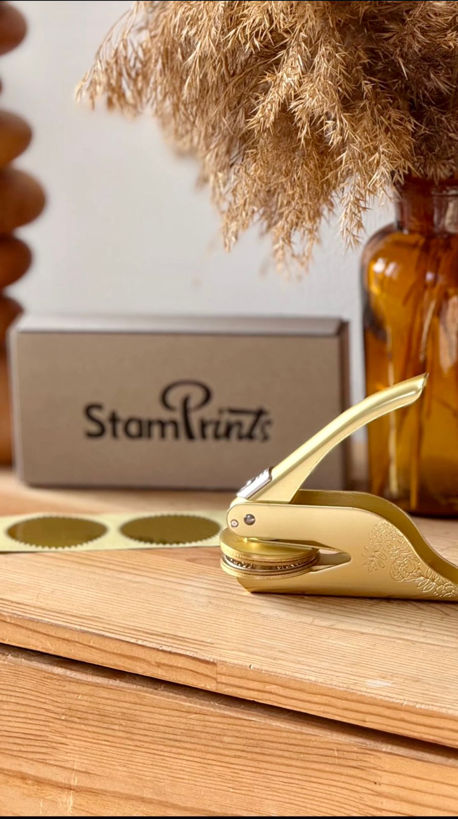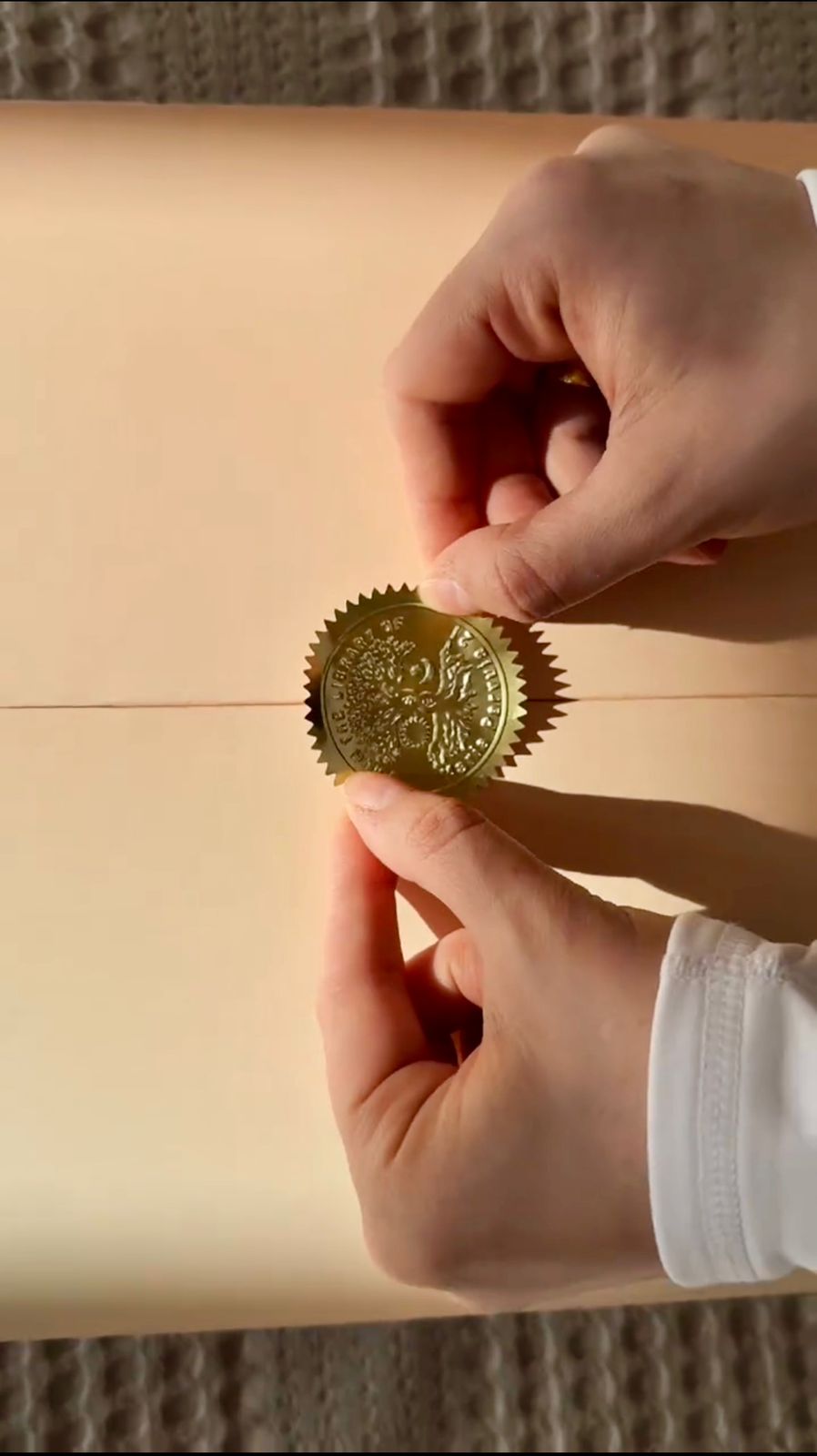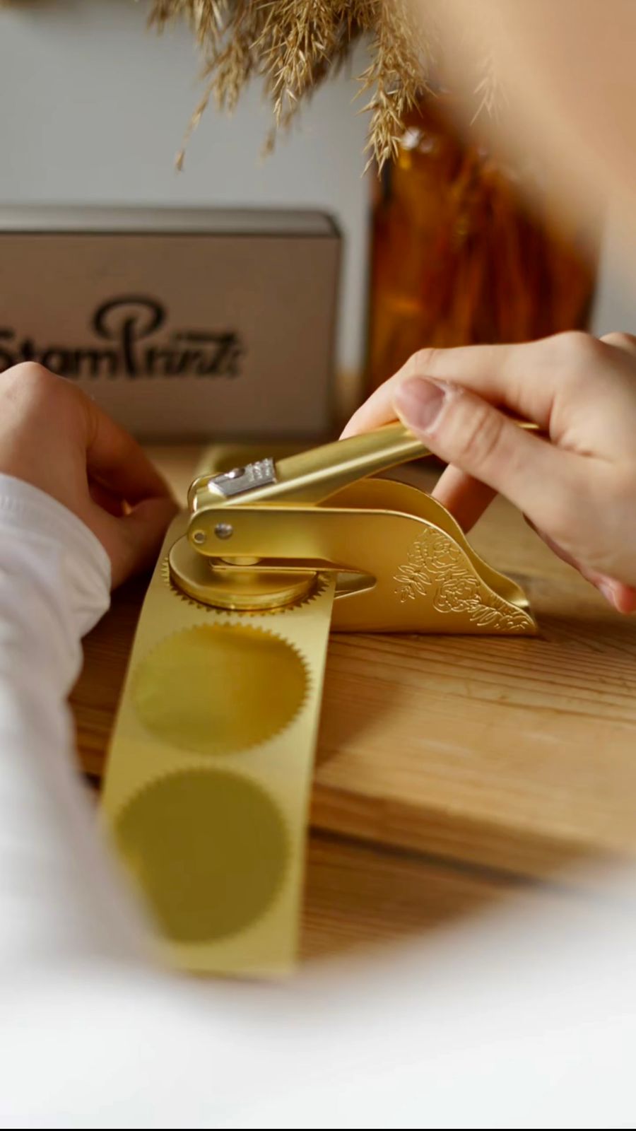 استخدم الختم المعدني لتثبيت الملصق الذهبي على مغلفاتك، ملفاتك، أو صناديقك الخاصة. فخامة التفاصيل تبدأ من هنا.