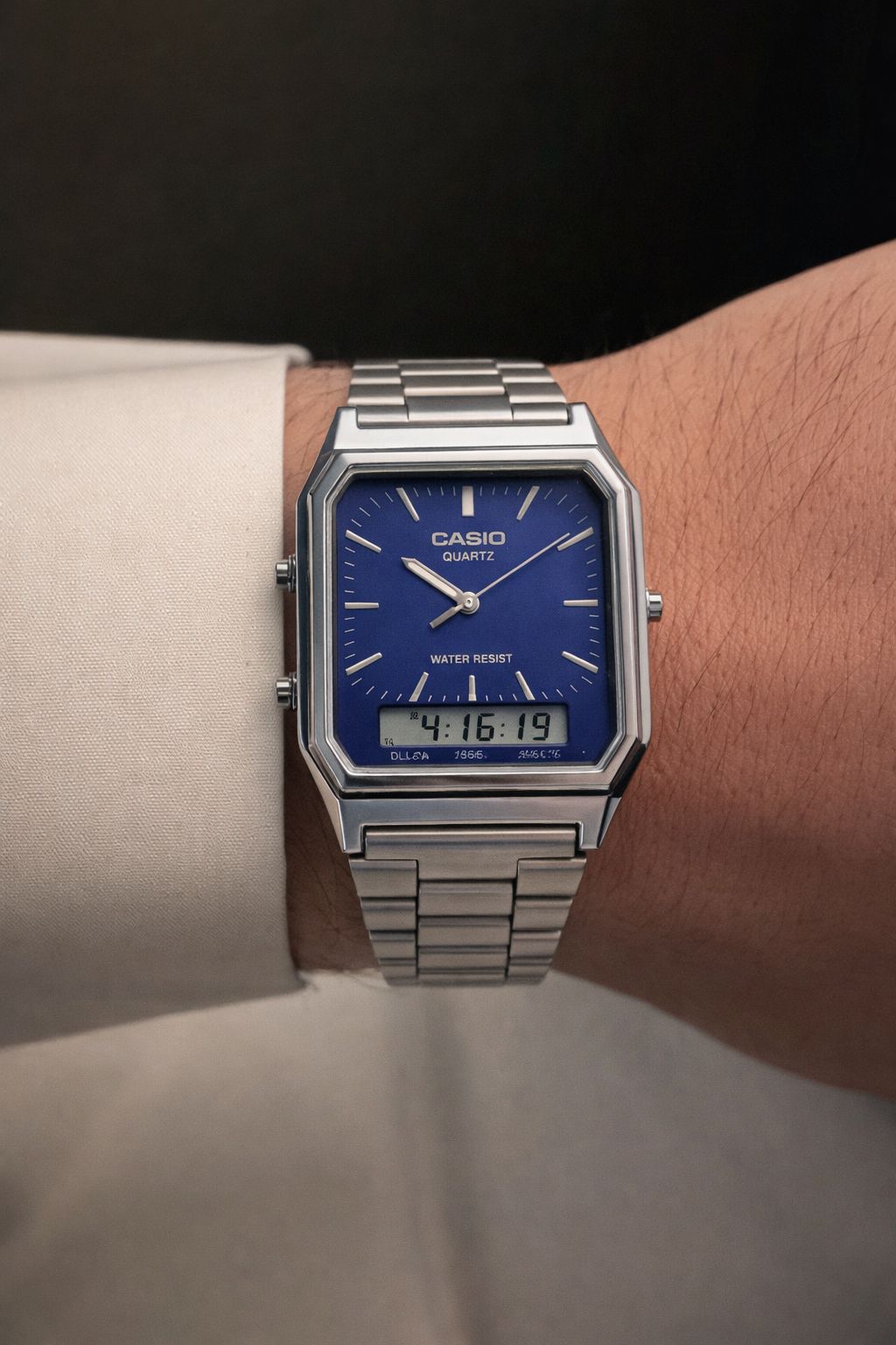 ساعة Casio AQ-230GA بتصميم كلاسيكي أنيق تجمع بين العقارب والشاشة الرقمية، مناسبة للاستخدام اليومي بإطلالة عملية وخفيفة على المعصم، مع سوار ستانلس ستيل ولمسة فاخرة تناسب جميع الأوقات.